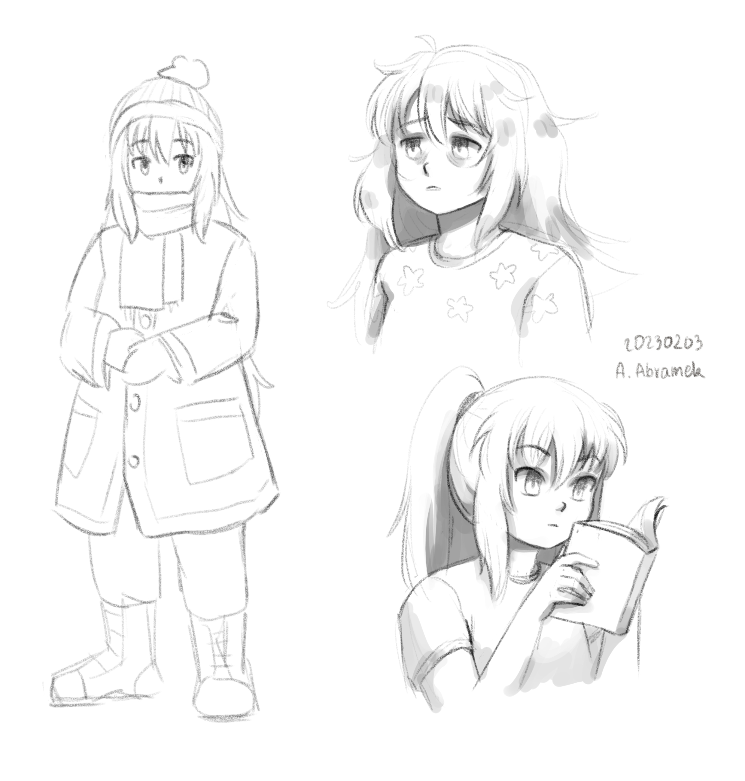 Hello! It’s time for a first sketchbook tour of this year! I gathered all sketches I did since beginning of the year here. I played around with different colouring styles in digital art and revisited some OCs I didn’t draw in a while.