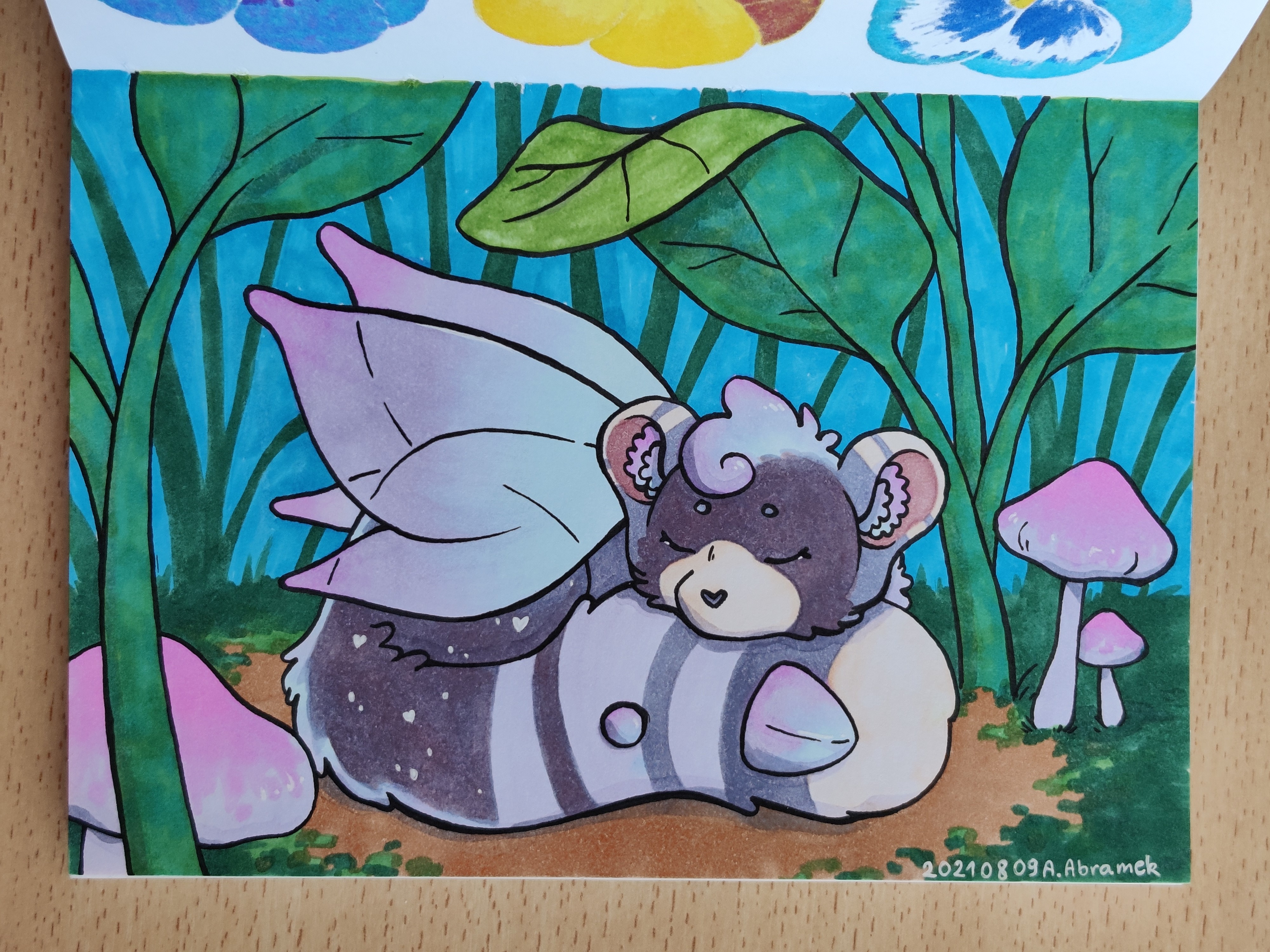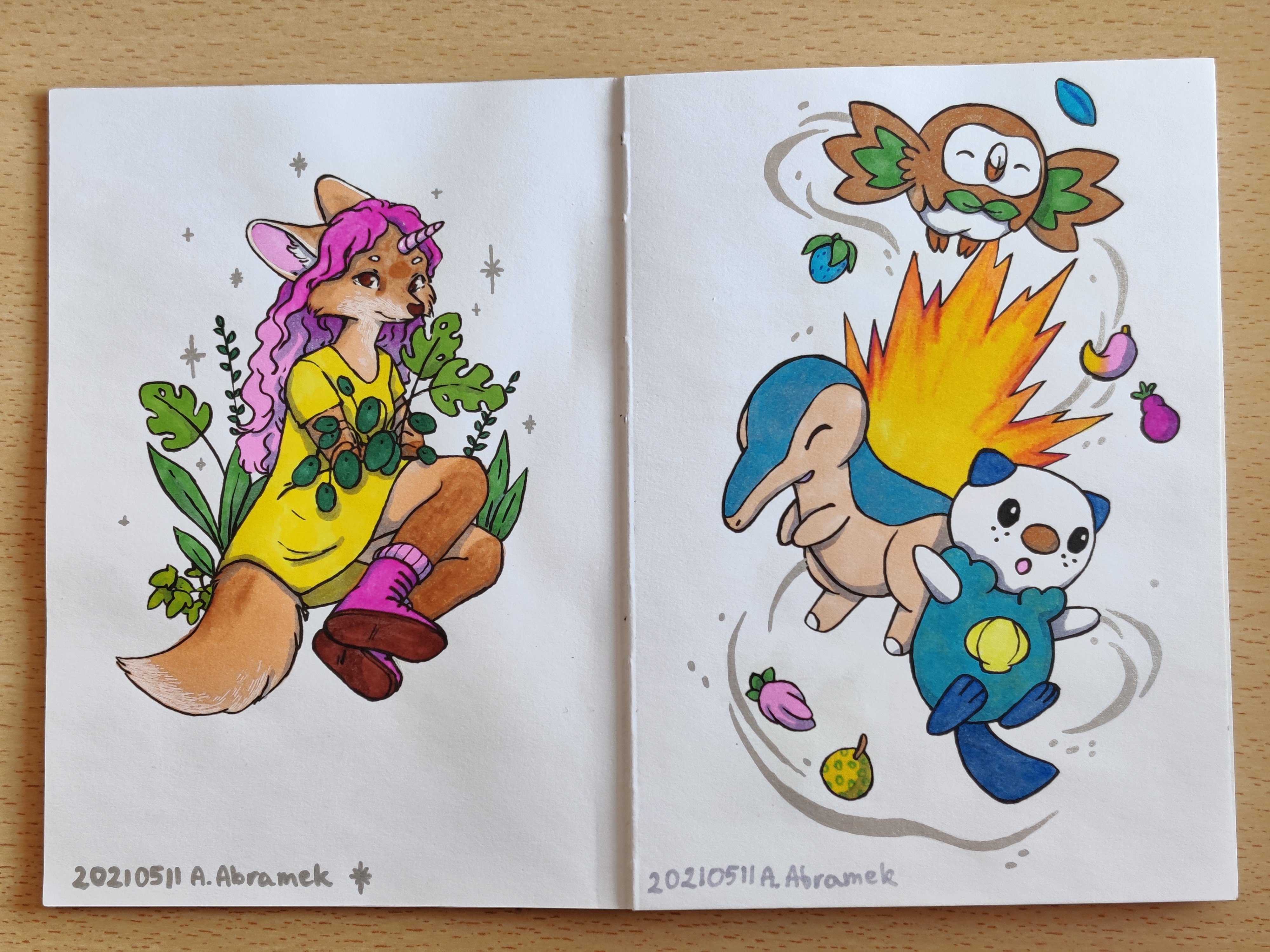 I also took out my small marker sketchbook and did a few small brush pen and alcohol marker drawings in it. I think I never showed this sketchbook so I took photos of all pages for you ^^
