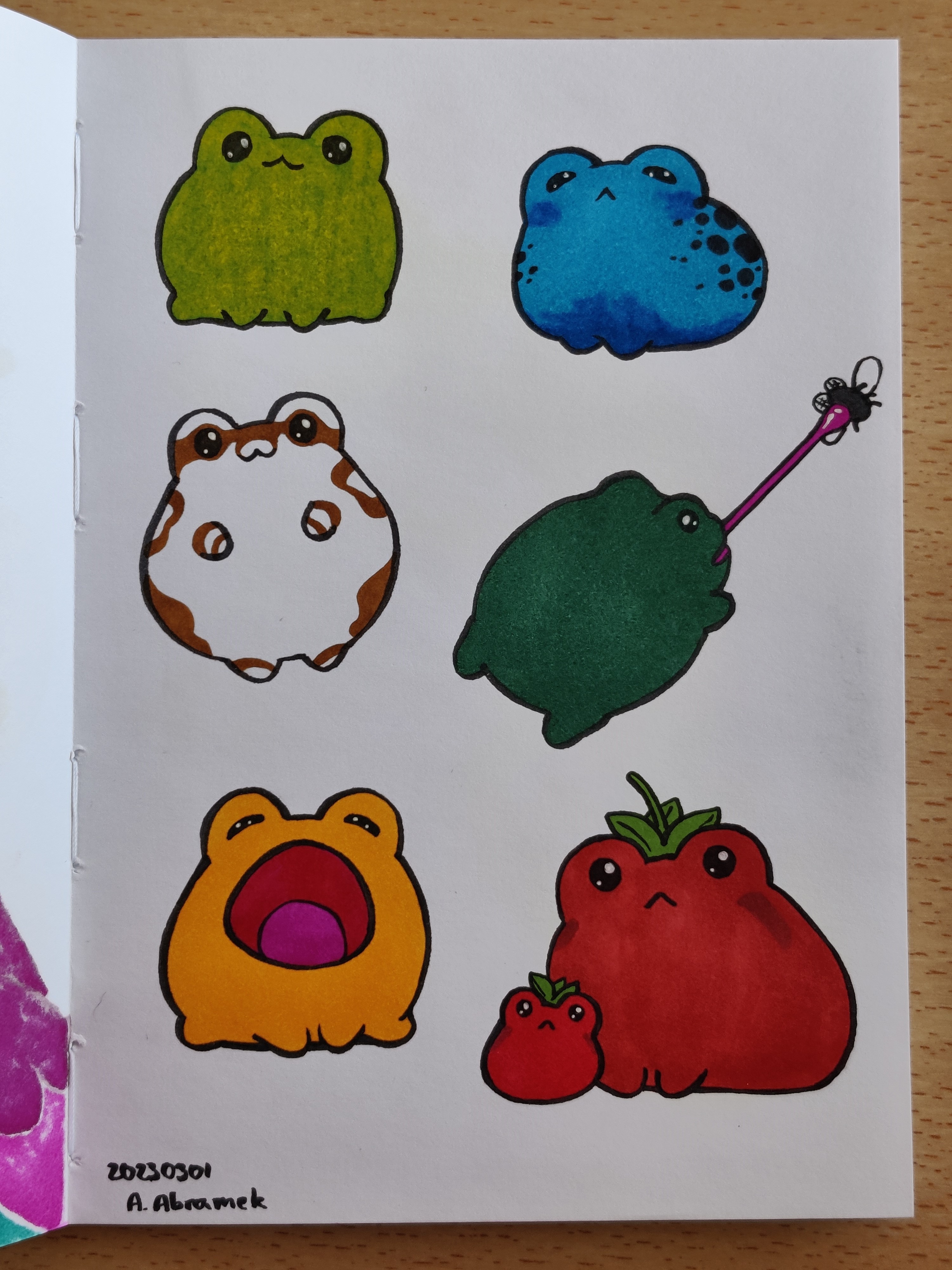 And finally the most recent sketches, the character from the beginning of the month and some cute frogs c: