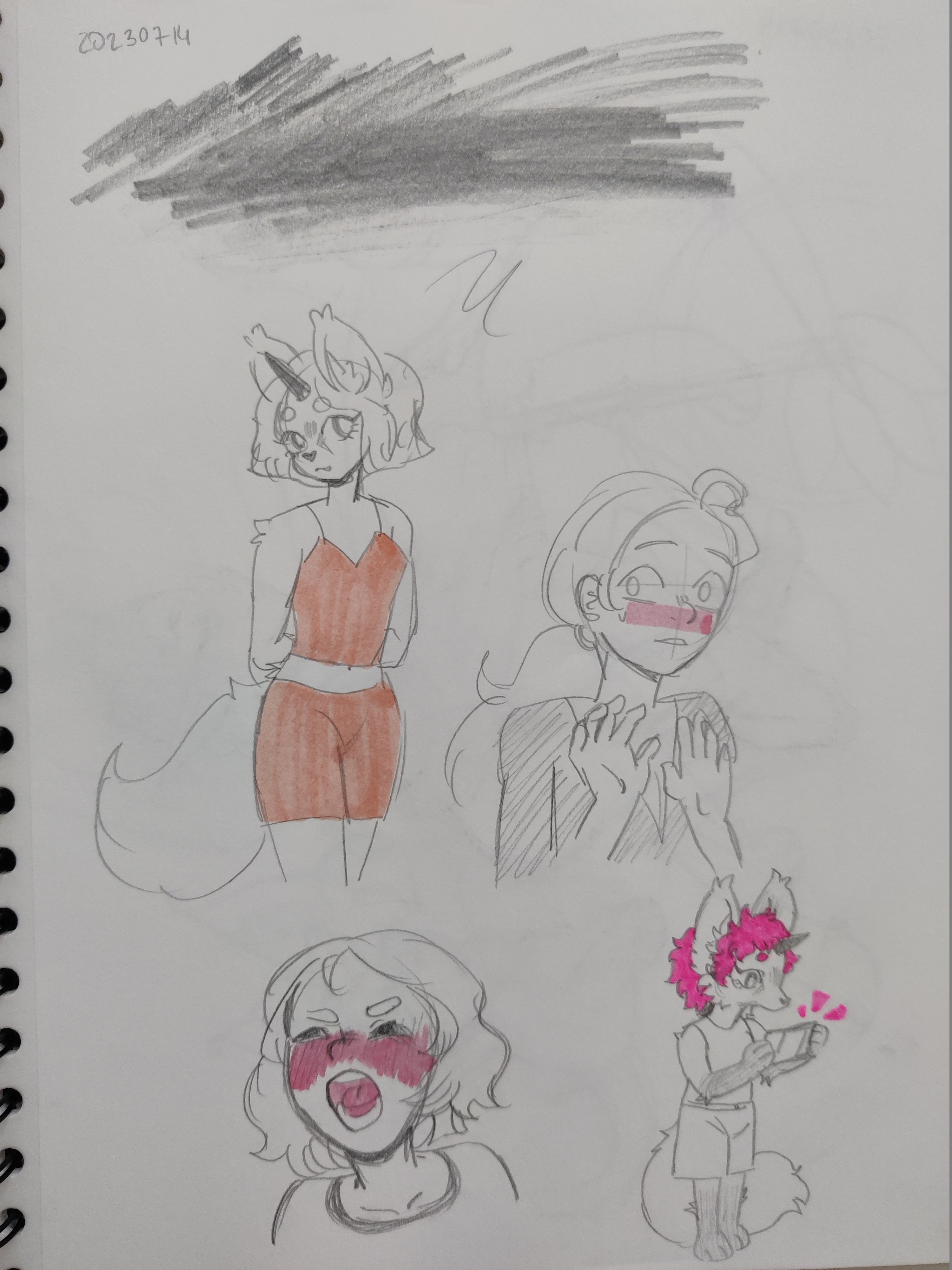 Hi all! I hope you are doing well <3 This month was quite busy for me with Art Fight and moving, and so I didn’t get to sketch (or draw in general) as much as I wanted. Hence this time I only have a few pages from my sketchbook to show. I was looking through Twitch as I saw new Ironmouse’s model, and I liked it a lot so I ended up sketching my (fur)sona in a similar style. And then I just keept going with a couple of random sketches in between ^-^